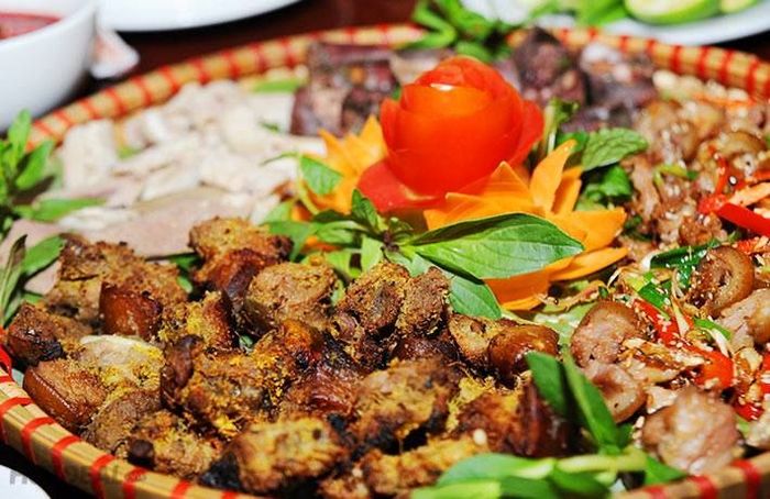 - Thịt lợn mường: Món ăn đặc biệt, gồm thịt lợn nướng, hấp và lòng lợn, được ăn kèm với chằm chéo đặc trưng của người dân tộc. Món ăn này mang đến sự kết hợp hoàn hảo giữa vị ngọt của thịt nướng và độ béo của lòng lợn.
