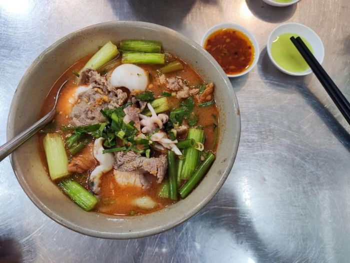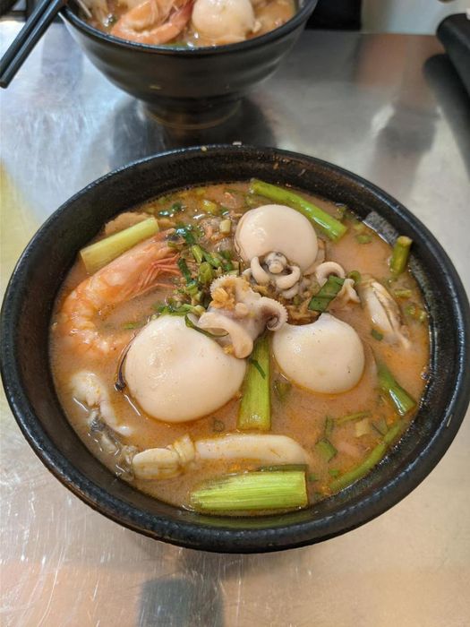 Điểm nhấn là nước dùng với hai loại: nước trong truyền thống thanh nhẹ, và nước lẩu Thái Tomyum đậm đà béo nhẹ mà không hề ngấy, giữ trọn vị chua cay đặc trưng. Mỗi tô chỉ 35k mà topping đầy đặn: tôm, mực, cá viên,… vừa chất lượng vừa hợp vệ sinh. Nếu bạn muốn đổi vị, hãy thử ngay món mì xào bò – sợi mì mềm thấm đẫm sốt bò mặn ngọt đậm đà, chỉ 30k. Đặc biệt, nơi đây còn phục vụ thêm burger – lựa chọn mới lạ cho bữa ăn nhanh gọn.