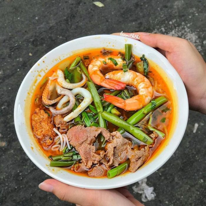 Điểm đặc trưng của quán chính là vị me chua dịu đặc trưng, nước dùng thanh mát được gia giảm theo khẩu vị từng khách bằng sa tế, tắc, đường hay mắm. Vị cay nồng nhẹ nhàng hòa quyện cùng hải sản tươi ngon, tạo nên trải nghiệm vị giác hấp dẫn. Ngoài bún hải sản, quán còn phục vụ hủ tiếu, mì sủi cảo thơm ngon không kém. Đặc biệt, quán nhận đặt hàng qua các app giao đồ ăn, ship tận nơi nhanh chóng – vô cùng tiện lợi cho những ngày nắng nóng hoặc bận rộn.