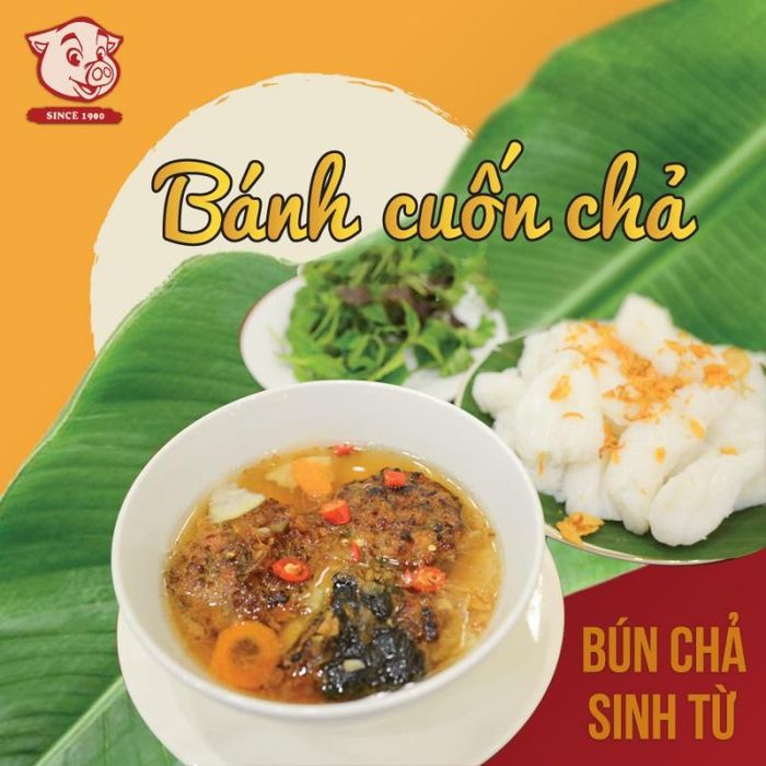 Bánh Cuốn Chả Sinh Từ không chỉ nổi tiếng với những đĩa bánh cuốn hấp dẫn mà còn là sự kết hợp hoàn hảo giữa bánh cuốn và chả nướng. Bánh cuốn ở đây có vỏ mềm, mỏng, mịn màng, thơm phức mùi gạo, ăn kèm với hành phi giòn và đậm đà mùi hành. Chả nướng thơm lừng được cuốn cùng bánh cuốn tạo nên một hương vị đặc trưng mà không nơi nào có được. Đặc biệt, nước mắm pha tỏi thơm lừng, chua ngọt vừa phải giúp món ăn trở nên hoàn hảo. Thêm vào đó, rau thơm ăn kèm càng làm món ăn thêm phần hấp dẫn. Bánh Cuốn Chả Sinh Từ sẽ khiến bạn khó quên ngay từ miếng đầu tiên, hứa hẹn mang lại trải nghiệm tuyệt vời với những ai yêu thích món ăn truyền thống này.