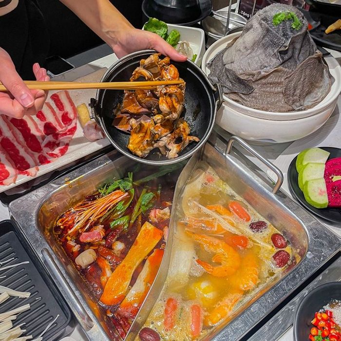 Nếu bạn là tín đồ của ẩm thực Trung Hoa và mê mẩn vị cay tê nồng nàn, thì không thể bỏ qua JiangHu Heroes's Hotpot – điểm đến lý tưởng để thưởng thức món ếch cay đặc sắc kết hợp cùng nước lẩu Mala King trứ danh chuẩn vị Tứ Xuyên. Thực khách có thể lựa chọn lẩu hai ngăn với bốn hương vị nước lẩu hấp dẫn: Mala King cay tê từ 50 loại thảo mộc đặc trưng, lẩu gà hầm bổ dưỡng, lẩu cà chua thanh mát và lẩu Tom Yum chua cay đậm đà. Ngoài thịt ếch dai ngon, thực đơn nhúng lẩu còn quy tụ các loại hải sản tươi sống như mực, bạch tuộc, cùng thịt bò tươi mềm, thỏa mãn mọi khẩu vị.