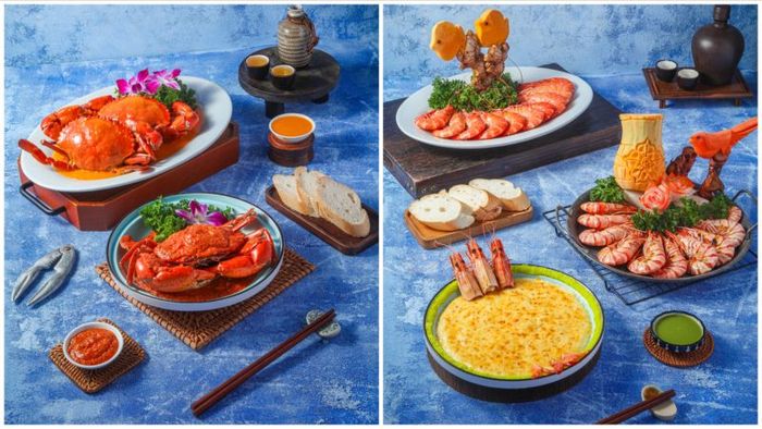 Menu phong phú của nhà hàng bao gồm các món lẩu, món chính và món ăn kèm đa dạng, phù hợp với mọi khẩu vị. Điểm đặc biệt là tôm hùm, được chế biến thành nhiều món ngon độc đáo như tôm hùm sốt bơ, gỏi tôm hùm, mang đến trải nghiệm ẩm thực đích thực. Bên cạnh đó, khách hàng có thể thưởng thức các món hải sản khác như tôm, cua, ghẹ, cá và ốc, chế biến theo các phong cách rang, xào, nướng, hấp và hầm. Tất cả các món ăn đều được chế biến từ nguyên liệu tươi ngon và do những đầu bếp tài năng thực hiện.