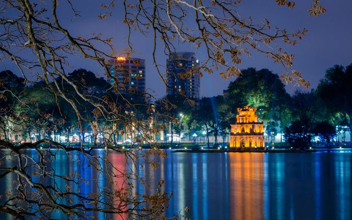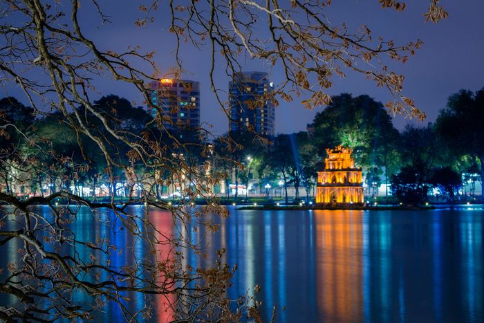 Cảnh sắc Hồ Gươm về đêm - Một bức tranh thiên nhiên hòa quyện cùng ánh sáng đô thị.