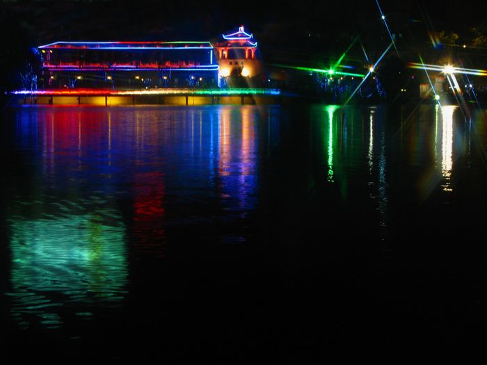 Hình ảnh hồ Gươm về đêm - Khung cảnh hồ Hoàn Kiếm lung linh, huyền ảo dưới ánh đêm.