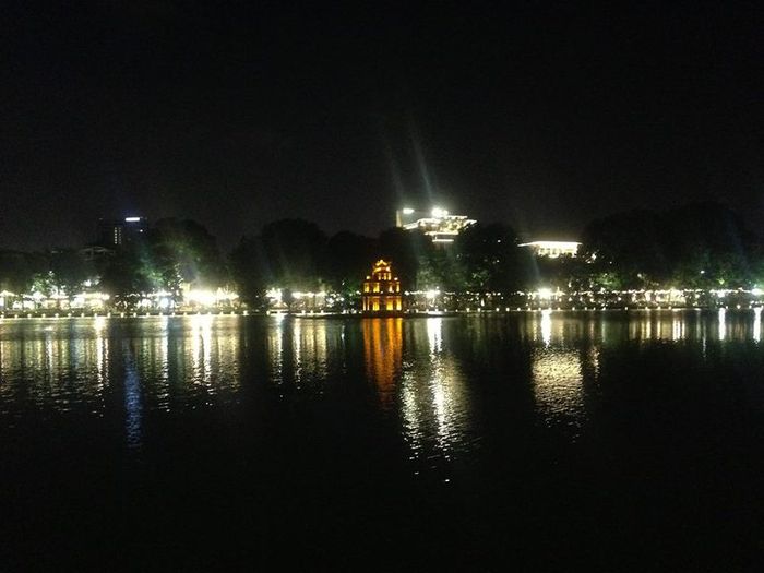 Hồ Gươm về đêm với không gian tĩnh lặng, thơ mộng và đầy cảm xúc