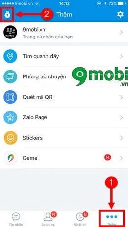 - Thực hiện Đăng nhập Zalo -> Vào mục Thêm - Other (1) và chọn biểu tượng bảo mật (2) để thiết lập an toàn.