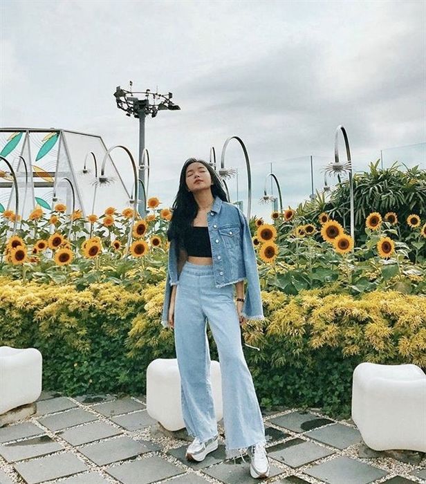Một cách phối đồ cực kỳ phong cách và cá tính với quần ống loe chính là kết hợp cùng áo khoác denim. Đây là sự lựa chọn hoàn hảo dành cho những cô nàng yêu thích vẻ ngoài mạnh mẽ, nổi loạn. Sự kết hợp giữa quần ống loe và áo khoác denim không chỉ tạo nên vẻ ngoài năng động mà còn rất thời thượng. Đặc biệt, áo khoác denim mix với quần jeans ống loe mang đến phong cách denim-on-denim cực hút mắt.