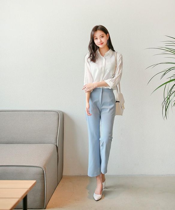 9. Quần Ống Loe Kết Hợp Với Áo Sơ Mi