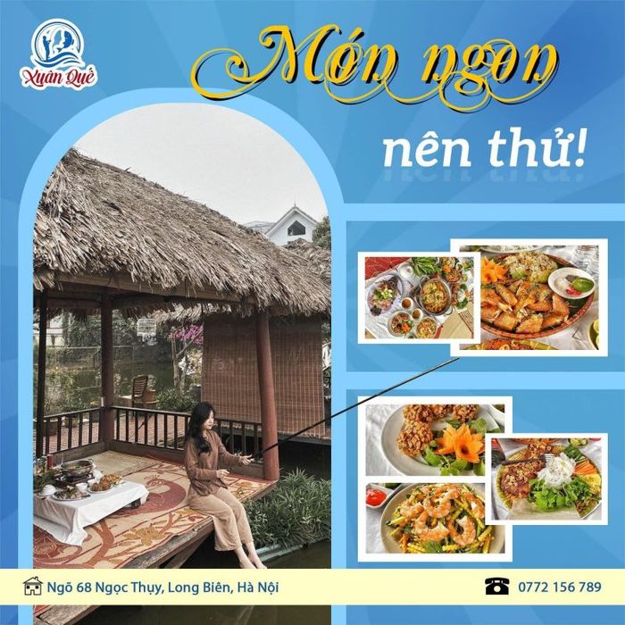 Nhà hàng Xuân Quế là một trong những địa điểm câu cá và ẩm thực nổi bật tại Ngọc Thụy, Long Biên, Hà Nội, nơi đã xây dựng được danh tiếng qua hơn mười năm phục vụ những thực khách yêu thích không gian yên bình và những món ăn đậm đà hương vị miền quê. Được bao quanh bởi hồ nước trong xanh và những hàng tre xanh mát, nhà hàng sinh thái Xuân Quế mang đến một không gian thư thái, tựa như chốn dừng chân lý tưởng giữa lòng thủ đô.