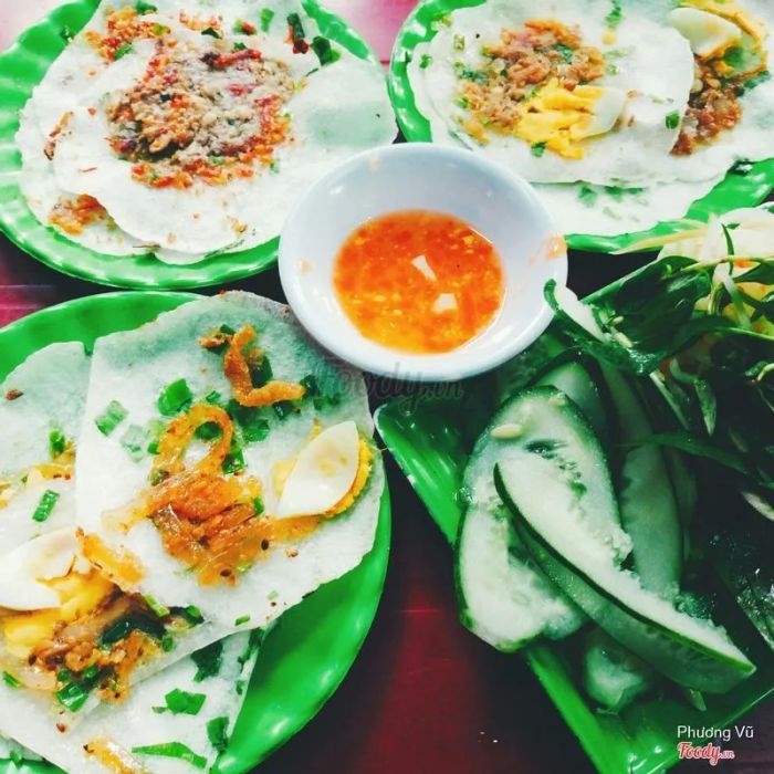 Bánh Ép Cây Sứ là địa điểm lý tưởng dành cho những ai yêu thích sự phong phú của ẩm thực Huế. Bánh ép tại đây nổi bật với lớp vỏ mềm mịn, dai dẻo, vừa được nướng nóng hổi, kết hợp hoàn hảo với nhân thịt, trứng, hành và rau tươi. Đặc biệt, nước mắm chấm có vị cay ngọt quyến rũ, khiến mỗi miếng bánh thêm phần hấp dẫn. Mùi thơm từ rau răm và vị chua ngọt của nước mắm tạo nên một trải nghiệm ẩm thực khó quên. Quán nổi tiếng vì mỗi chiếc bánh ép được làm ngay khi khách yêu cầu, đảm bảo luôn nóng hổi và tươi ngon. Vào những ngày se lạnh, ngồi thưởng thức bánh ép cùng bạn bè trong không gian ấm cúng sẽ là một kỷ niệm tuyệt vời.