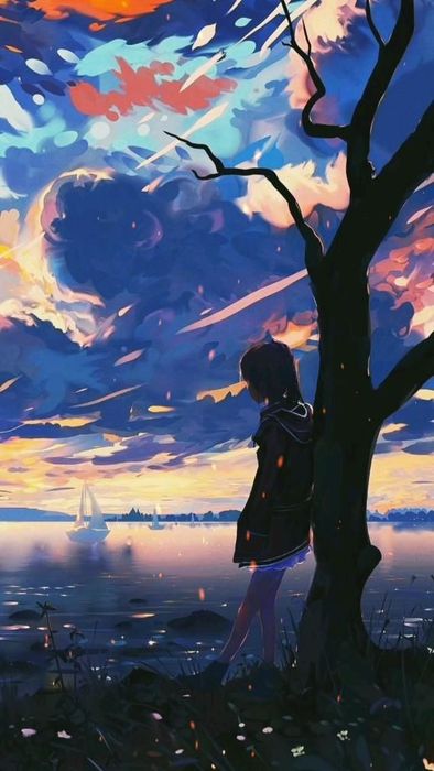 Hình nền cô gái buồn hoạt hình dành cho điện thoại, mang đến cảm xúc sâu lắng