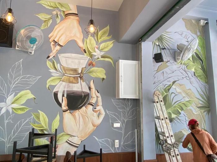 - Vẽ tranh tường cho quán cafe, trà sữa, nhà hàng, quán ăn, khách sạn.