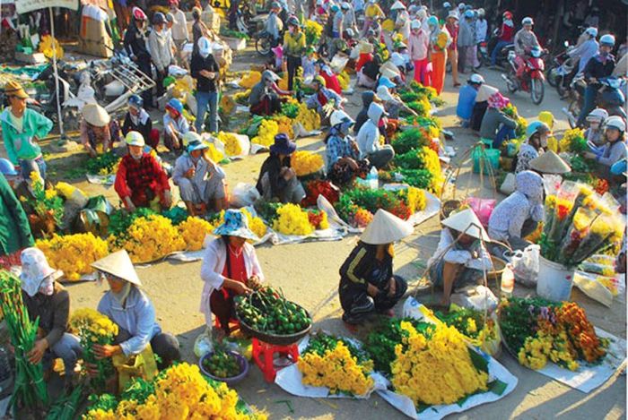 Hòa vào dòng chảy của những sạp hàng đón xuân.