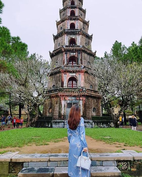 Điểm nhấn của Thiên Mụ là tháp Phước Duyên 21m, với bảy tầng cao vút. Mỗi tầng tháp đều có một tượng Phật, và du khách có thể leo lên cầu thang xoắn ốc dẫn đến tầng cao nhất, nơi trước đây có tượng Phật vàng. Tháp Phước Duyên là hình ảnh biểu tượng gắn liền với ngôi chùa này, luôn thu hút du khách trong những chuyến hành hương hay tham quan. Đừng quên ghé thăm nơi này trong dịp 8/3 để trải nghiệm không gian linh thiêng và thanh tịnh của chùa.