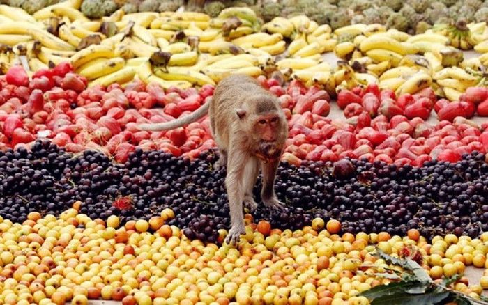 Vào ngày Chủ nhật cuối cùng của tháng 11, hàng nghìn chú khỉ tập trung tại đền Pra Prang Sam Yot, tỉnh Lopburi, Thái Lan để tham gia lễ hội buffet trái cây đặc sắc. Mỗi năm, khoảng 4 tấn trái cây, bao gồm chuối, nho, táo và nhiều loại khác, cùng với các đồ uống như nước hoa quả, Coca, sữa, được chuẩn bị cho những chú khỉ thưởng thức.