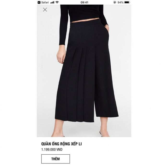 Với kiểu dáng cạp cao, ngang gối và ống rộng thả lỏng, chiếc quần này đã trở thành biểu tượng của sự thoải mái và thời thượng. Tuy nhiên, điểm khác biệt của Zara nằm ở chất liệu ánh kim độc đáo, giúp chiếc quần không chỉ giữ được vẻ thanh lịch mà còn thêm phần nổi bật và hiện đại. Giá tham khảo cho mẫu quần này là khoảng 36 USD (khoảng 800 nghìn đồng).