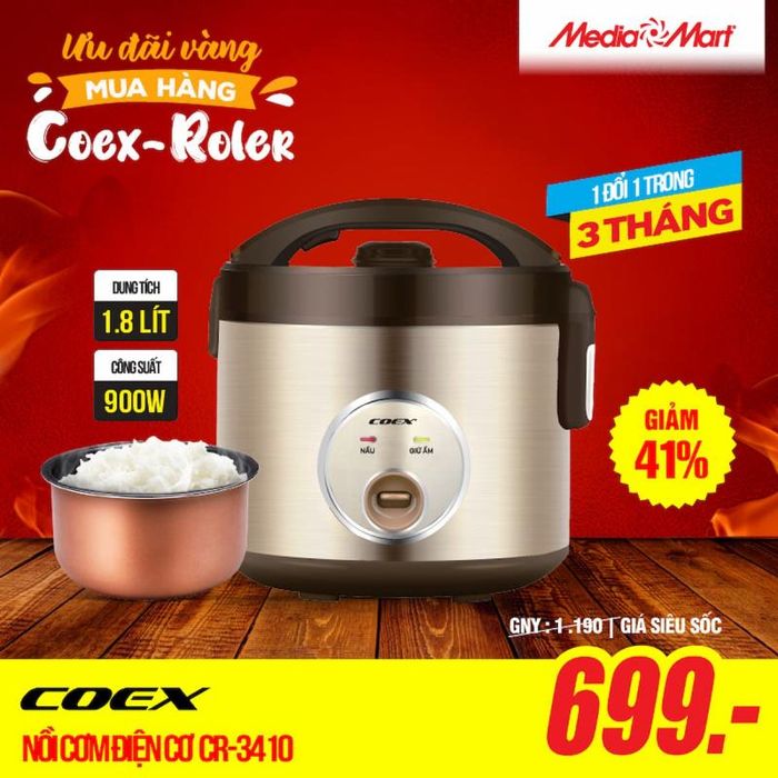 Khi mua nồi cơm điện tại MediaMart Hà Giang, khách hàng sẽ được hưởng nhiều ưu đãi hấp dẫn như giảm giá lên đến 50%, hỗ trợ trả góp 0% lãi suất, miễn phí giao hàng tận nơi và các chương trình khuyến mãi khác. Đặc biệt, tất cả sản phẩm tại MediaMart đều được cam kết chính hãng 100%, với chế độ bảo hành tốt và chính sách đổi mới sản phẩm trong vòng 45 ngày.