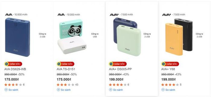 Thế Giới Di Động là cái tên đã quá quen thuộc đối với người tiêu dùng, đặc biệt là với sự phủ sóng rộng khắp toàn quốc, chuỗi cửa hàng này luôn khẳng định được sự vững mạnh và uy tín của mình. Mọi sản phẩm sạc dự phòng được bày bán tại đây đều đảm bảo 100% chính hãng, đa dạng về mẫu mã, công năng, đáp ứng đầy đủ nhu cầu của khách hàng. Bạn có thể dễ dàng lựa chọn các sản phẩm phù hợp với sở thích cá nhân và khả năng tài chính, đặc biệt còn được hỗ trợ trả góp 0% lãi suất khi mua sắm. Một số sản phẩm sạc dự phòng nổi bật tại Thế Giới Di Động có thể kể đến như: pin sạc 10.000 mAh AVA DS629-WB xanh navy, Xmobile PowerLite P106WD, Xmobile LJ JP90S, Hydrus PA CK01,...