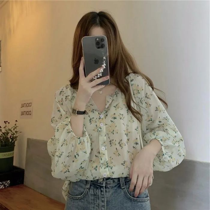 - Áo chiffon tay dài dáng rộng xếp tầng phong cách thời trang quốc tế