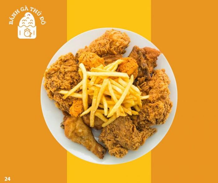 Gà rán - Bánh Gà Thủ Đô chinh phục thực khách bởi thực đơn phong phú với các món gà thơm ngon: từ gà sốt kem tiêu đến gà chiên nước mắm, gà giòn cay Cajun hay gà không xương giòn rụm. Nguyên liệu luôn tươi mới, không sử dụng gà đông lạnh, từng miếng gà giữ trọn hương vị ngọt thanh, thớ thịt săn chắc và lớp vỏ giòn rụm đầy mê hoặc. Khi cắn vào, bạn sẽ cảm nhận sự hòa quyện hoàn hảo giữa lớp vỏ giòn tan và phần thịt mọng nước bên trong – một trải nghiệm vị giác khiến ai nếm thử cũng phải xuýt xoa.