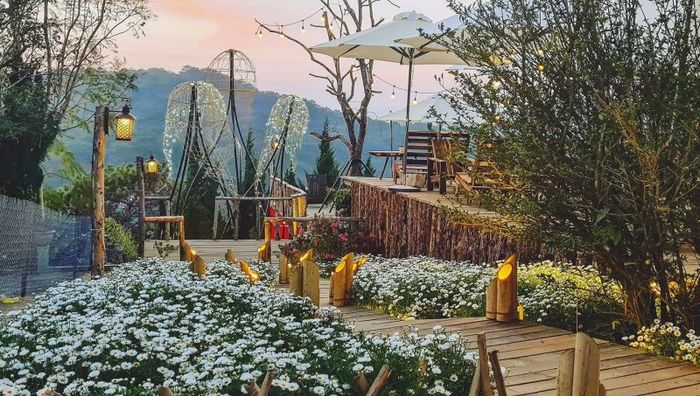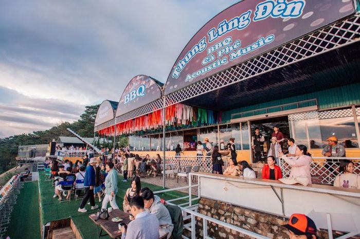 Thung Lũng Đèn mang đúng cái tên huyền bí của mình khi nằm trên một triền đồi cao, từ đây, vào mỗi tối, bạn sẽ được chiêm ngưỡng khung cảnh một vùng sáng vàng rực, hòa quyện cùng lớp sương đêm mờ ảo, tạo nên một vẻ đẹp lãng mạn đầy mê hoặc. Quán được thiết kế theo phong cách cafe sân vườn, nổi bật với không gian kính trong suốt, bao quanh bởi cây xanh và hoa tươi, khiến du khách như lạc vào một khu vườn nhỏ thơ mộng giữa lòng Đà Lạt.