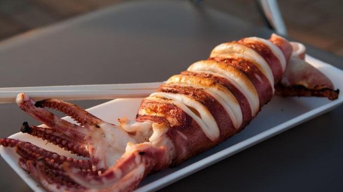 Tại các thành phố ven biển như Sihanouk và Kep, một món ăn không thể bỏ qua chính là mực nướng Ang dtray meuk. Đây là món ăn được yêu thích nhờ hương vị thơm ngon và tươi mới. Mặc dù các món hải sản khác như thịt bò, thịt gà cũng rất phổ biến, nhưng mực nướng lại nổi bật hơn cả. Điểm đặc biệt của món này là mực không được tẩm ướp gia vị mà sẽ được chấm cùng các loại sốt đặc trưng, giúp giữ nguyên vẹn vị ngọt tự nhiên của hải sản tươi ngon. Mực nướng Campuchia có sự giản dị nhưng lại rất đậm đà và hấp dẫn, khiến thực khách khó có thể cưỡng lại.