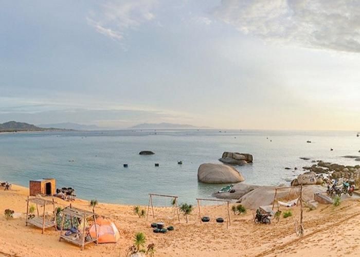 Đến với Sơn Hải, du khách sẽ cảm nhận được một không gian an lành, tách biệt khỏi những ồn ào của cuộc sống thường nhật. Bãi cát trải dài ôm ấp những con sóng vỗ về, những bước chân hằn trên cát mềm mại như những dấu ấn của một cuộc hành trình lãng mạn. Những mỏm đá vươn ra biển, dòng nước trong xanh bao quanh khiến ai cũng muốn lao xuống để hòa mình vào làn nước mát lành. Trên nền trời xanh ngắt, những đám mây trắng bồng bềnh trôi như những viên kẹo bông ngọt ngào.
