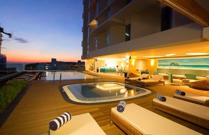 Khách sạn mang đến chuỗi tiện ích đa dạng: đường hầm nối trực tiếp đến bãi biển, sân đáp trực thăng, phòng khám đa khoa quốc tế, bể bơi rộng, nhà hàng sang trọng, hội trường, spa thư giãn và bar sôi động. Đặc biệt, bạn có thể thưởng thức không gian yên bình trên tầng 38 với quán cà phê và nhà hàng, ngắm toàn cảnh thành phố và bầu trời sao qua kính thiên văn hoặc đắm mình trong làn nước mát lạnh của hồ bơi giữa buổi sớm mai hay chiều hoàng hôn rực rỡ.