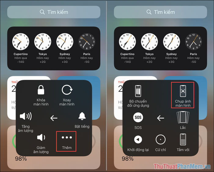 Bước 5: Tiếp theo, chọn Thêm và nhấn vào Chụp màn hình để thực hiện thao tác chụp màn hình. Khi sử dụng phương pháp này, các giao diện trợ năng sẽ tự động ẩn đi, chỉ giữ lại nội dung chính trên màn hình, tương tự như cách chụp màn hình truyền thống.
