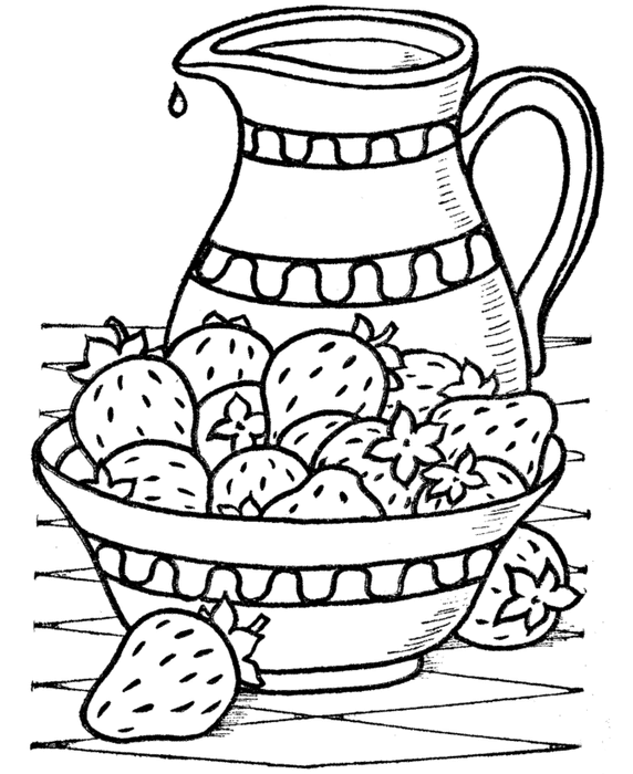 Tranh tô màu rổ dâu tây - Hình ảnh sinh động, kết hợp giữa trái cây và đồ vật quen thuộc