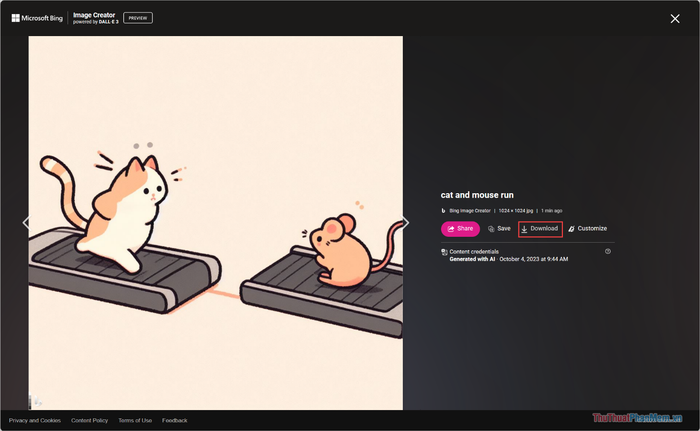 Khi bức tranh AI hoàn thành, bạn có thể nhấn chọn hình ảnh và chọn Tải xuống để lưu về máy tính của mình.