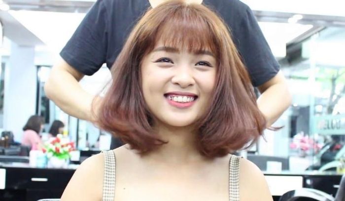 Nếu bạn không hợp với mái ngố siêu ngắn, mái bằng cũng là lựa chọn hoàn hảo. Kiểu tóc ngắn uốn cụp dịu dàng kết hợp với mái bằng sẽ mang đến cho bạn vẻ ngoài ngọt ngào, dễ thương và thu hút mọi ánh nhìn.