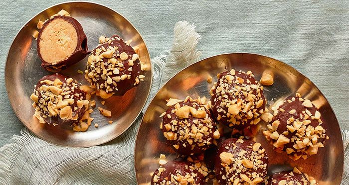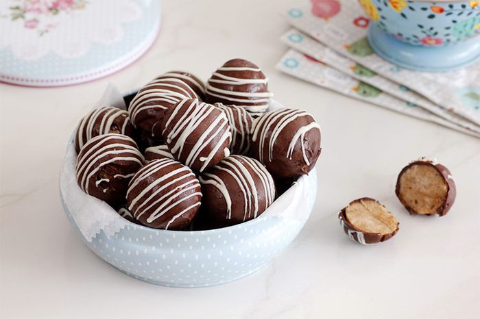 Cách thực hiện: Đầu tiên, bạn cho kem sữa béo và chocolate đen vào nồi, đun chảy và khuấy đều cho đến khi chúng hòa quyện vào nhau thành một hỗn hợp mịn màng. Sau đó, đổ hỗn hợp vào khay và để đông trong khoảng 1 tiếng. Khi hỗn hợp đã cứng lại, múc ra từng phần nhỏ và vo thành viên tròn. Trong khi đó, đun chảy bơ đậu phộng để làm lớp phủ bên ngoài. Cuối cùng, nhúng từng viên truffle vào bơ đậu phộng lỏng, sau đó lăn qua lớp đậu phộng giã nhuyễn, và món truffle đã sẵn sàng thưởng thức.