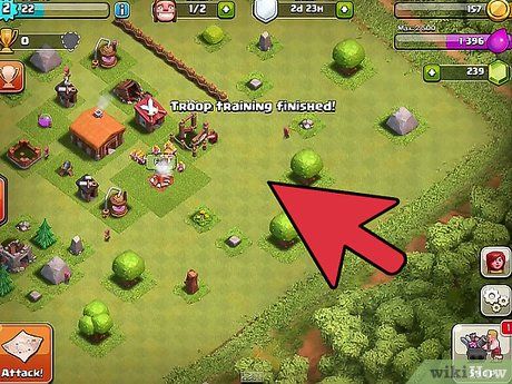 Sau mỗi trận tấn công, hãy bổ sung quân lính để thay thế những tổn thất. Để huấn luyện quân, hãy nhấp vào Barrack (Nhà quân) và chọn loại quân phù hợp. Ban đầu, Barbarian (25 Elixir) và Giant (500 Elixir) là những lựa chọn hiệu quả nhất.