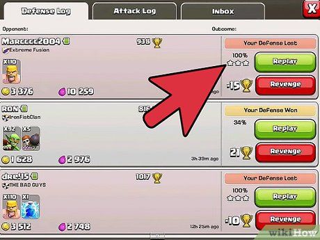 Tập trung tấn công nhà chứa tài nguyên. Hãy ưu tiên tấn công các kho chứa vàng và Elixir của đối thủ.