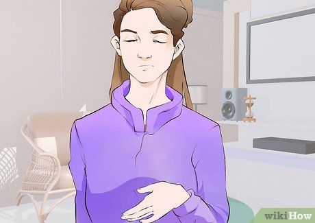- Đặt tay lên bụng. Bụng của bạn sẽ phồng lên khi hít vào. Đây là kỹ thuật hít thở bằng cơ hoành, giúp bạn lấy lại bình tĩnh nhanh chóng.