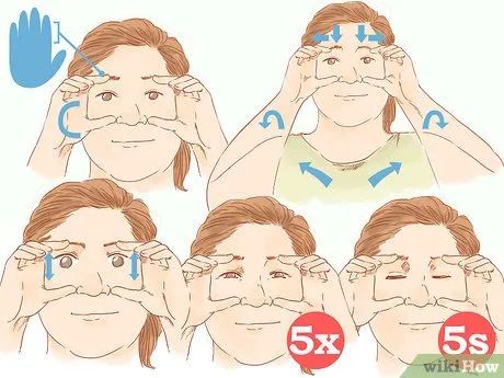 - Ấn nhẹ các ngón tay, mở mắt to và giữ nguyên trong 5 giây, đồng thời ấn chân mày để trán không cử động.