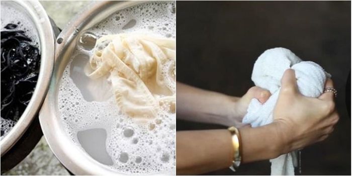 - Tiếp tục khuấy đều nước và vò nhẹ tay để làm sạch bụi bẩn, sau đó vắt nước và hòa thêm 1 ly giấm hoặc nước cốt chanh vào nước lạnh, rồi giặt lại để đồ len sạch và mềm mại.