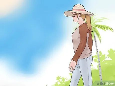Mặc trang phục bảo vệ da. Sử dụng mũ rộng vành và kính râm để che chắn da càng nhiều càng tốt, giảm thiểu tiếp xúc với tia UV có hại.