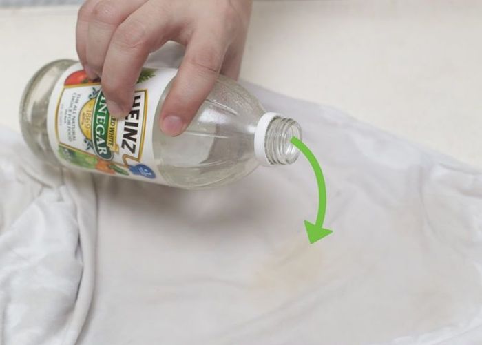 Sử dụng giấm ăn và nước giặt tẩy để làm sạch vết cà phê