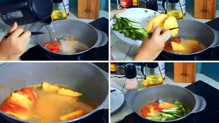 Món canh hiện lên với màu sắc quyến rũ, đỏ tươi của cà chua, xanh mướt của đậu bắp và vàng ươm của dứa, tất cả hòa quyện tạo nên một món ăn vô cùng hấp dẫn và bắt mắt.