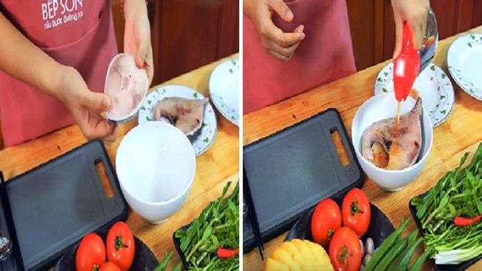 Cá bớp mua về, làm sạch và để ráo. Sau đó, ướp cá với một chút tiêu, hạt nêm và nước mắm. Để khoảng 3 phút cho cá ngấm gia vị.
