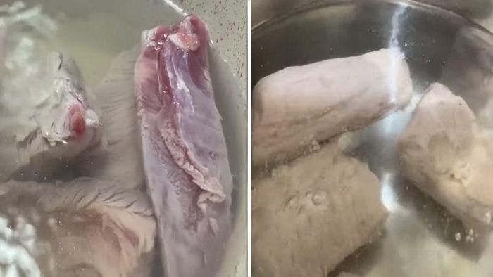 Mẹo nhỏ: Việc chần sơ sườn giúp nước hầm trong và cháo khi nấu sẽ thơm ngon, tinh khiết hơn rất nhiều.