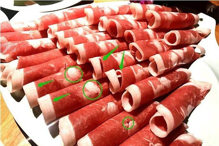 Ba chỉ bò Mỹ là loại thịt cao cấp, tưởng chừng như không thể có hàng giả, nhưng trên thực tế, vẫn có những loại thịt giả. Chúng được chế biến tinh vi từ các loại thịt rẻ tiền, thêm phụ gia, phẩm màu, hương vị bò rồi nén lại. Sau khi đông lạnh, cắt thành lát mỏng, nhìn rất giống thịt bò Mỹ thật.