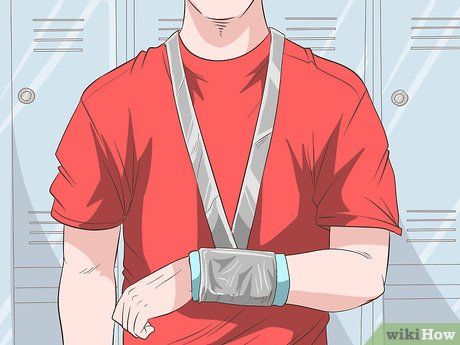 Vệ sinh và băng bó vết thương trước khi đeo đai treo tay. Đảm bảo rửa sạch, thấm khô và băng kín vết thương hở trước khi tiếp xúc với vải. Nếu vết thương nghiêm trọng hoặc có xương nhô ra, hãy đến bệnh viện ngay lập tức.