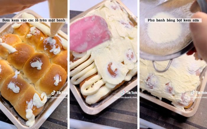 Chế biến phần kem sữa thơm béoBước 5 Phủ kem sữa lên bánh mì