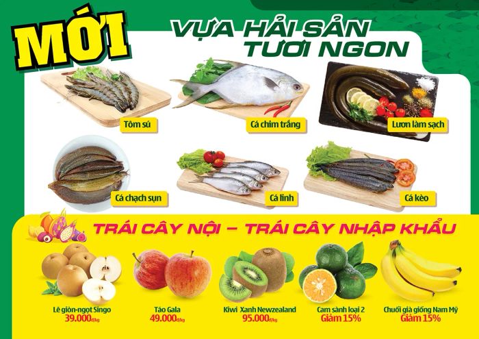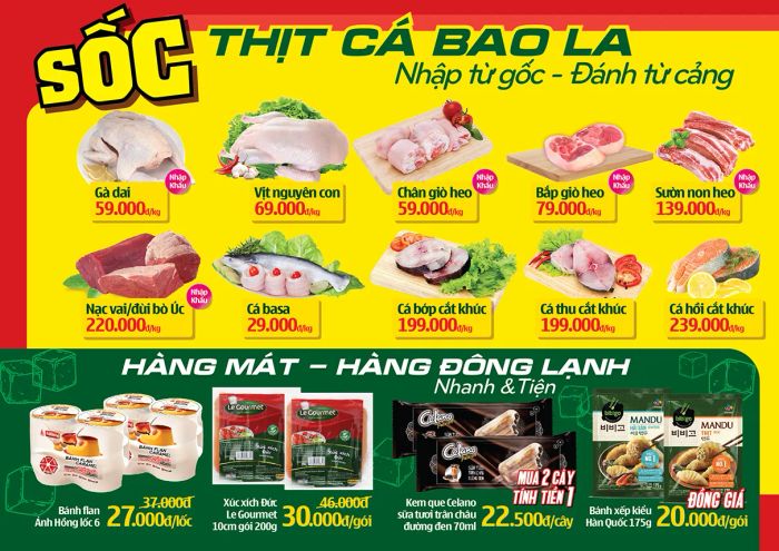 - Hàng hóa đa dạng bao gồm đồ uống, gia vị nấu ăn, thực phẩm ăn liền, đóng hộp, sản phẩm cho bé, bánh kẹo, ăn vặt và thực phẩm tươi sống...