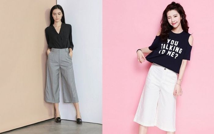Quần lửng ống rộng kết hợp với áo phông hoặc áo sơ mi