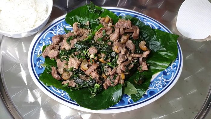 Món thịt dê xào lá lốt đã hoàn thànhThịt dê có vị ngọt tự nhiên, gia vị thấm đều, với sự kết hợp giữa độ dai giòn và độ mềm tuyệt vời. Lá lốt thêm phần hương thơm đặc trưng. Món ăn này ăn kèm với cơm trắng và thưởng thức khi còn nóng sẽ là sự lựa chọn hoàn hảo.