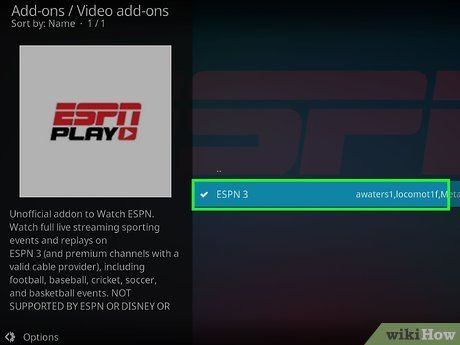 - Các tiện ích bổ sung của Kodi có thể thay đổi, và có thể bạn không thể cài đặt tiện ích cần thiết để xem ESPN.